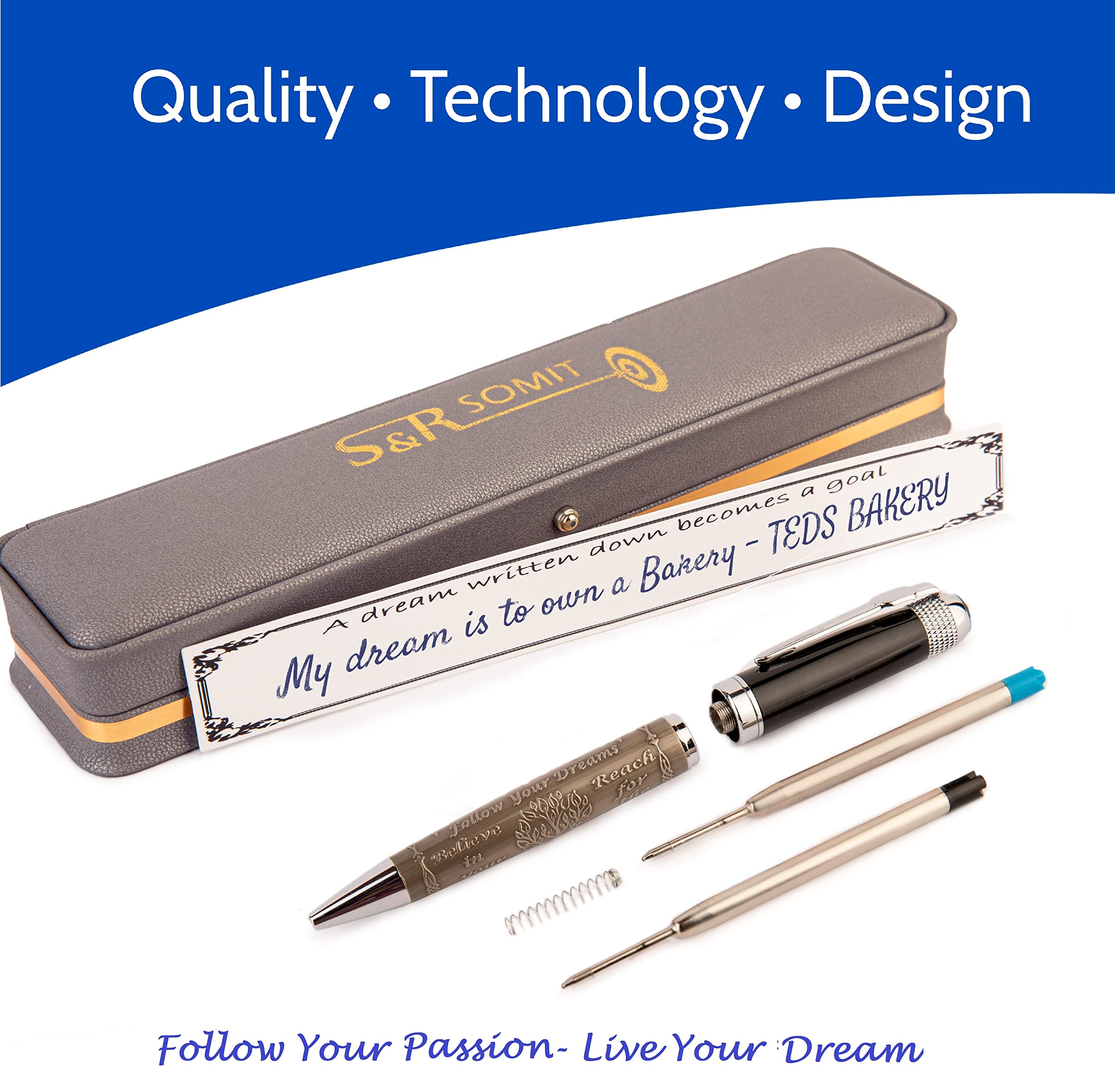 TOP WRITING QUALITY - Super-silky writing experience, no leakage, no smudging steady ink flow, Ink dries quickly and never fades. Also suits the lefties among us. No ink smearing and no mess. This pen doesn’t skip, writes smoothly and just feels good using it.. SPECIAL GIFT - A gift that exudes unparalleled elegance. With its distinctive engraving, this pen becomes a cherished and personalized treasure, suitable for all. Whether you're looking for the perfect gift for every one or a delightful treat for yourself, this sophisticated pen is the ultimate choice.. ERGONOMIC DESIGN - SOMIT pens provide perfect balance and appropriate weight and will not make your hand tired of writing. We have put our efforts in creating a comfortable grip and still keep it a nice writing pen.. IMPECCABLE WRITING TOOL - With high requirements of material selection and workmanship. Specially designed to meet the demands of today's work environment, ranging from simplicity to originality and is also very suitable as a unique gift.. ELEGANT PACKAGE- The luxury pen has a fancy box with the magic light shimming over the beautiful and full of inspiration pen which provide a precious and extraordinary glamours. Gentle led light providing the pen more professional look and is a great display for office desk..