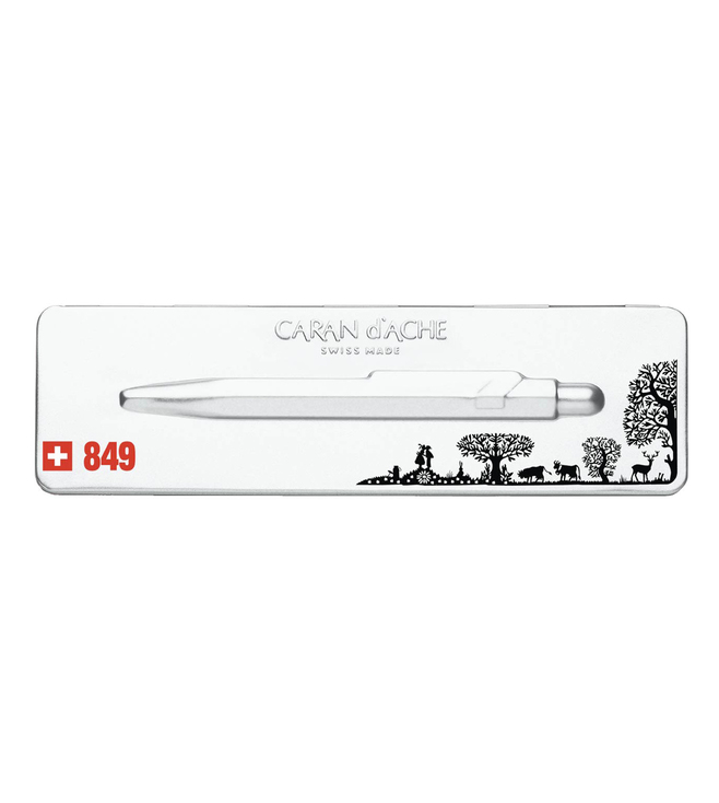 WHY IT’S SPECIAL A true cult object, the 849 now sees its characteristic hexagonal shape hemmed with swiss symbols, providing a complete introduction to swiss culture. From the white cross to alpine flowers, chocolate to traditional paper-cut decorations, Switzerland's most famous symbols take their places of pride in this collection. This model pays tribute to the traditional art of papercutting. Immerse yourself in swiss culture with the 849 papercut ballpoint pen and its alpine scenery-inspired decoration. Dimension - Width (6) cm, Height (4) cm, Length (15) cm. FEATURES COLLECTION NAME Contemporary COLOR Black & White FEATURE1 Light and robust hexagonal aluminium body FEATURE2 Motif inspired by Alpine scenes, colour applied by electrostatic powder coating FEATURE3 Flexible clip and push button mechanism MATERIAL TYPE Metal NET QUANTITY 1 WRITING INSTRUMENT TYPE Ballpoint Pen