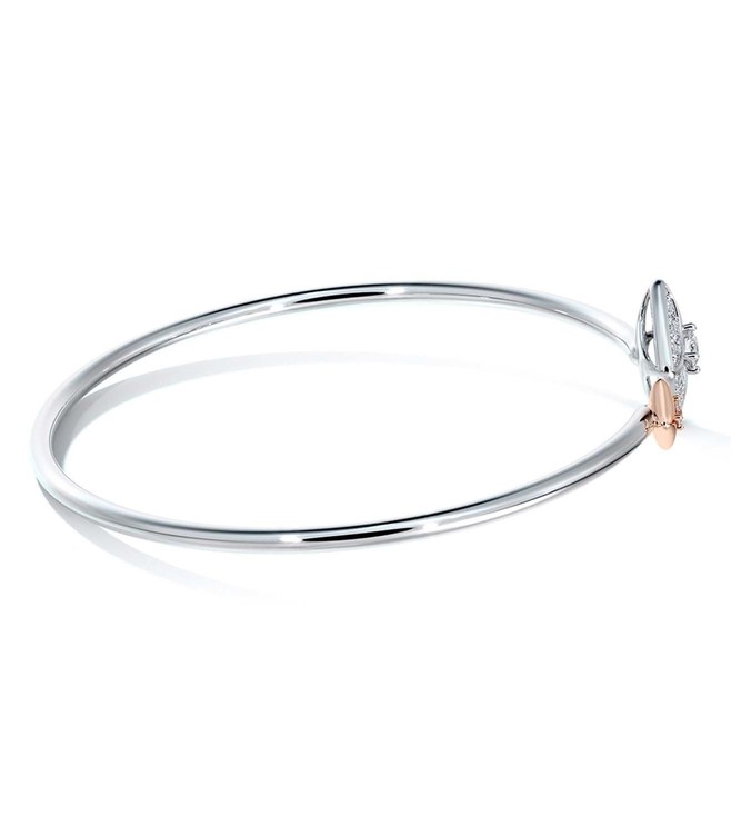 This white gold and rose gold bangle from Forevermark is adorned with 0.16-carat excellent cut Forevermark diamond with GH colour and VS clarity. This bangle is shaped using 18k gold, which is sure to impress everyone around. The pave icon in which the Forevermark diamond is set immediately takes you to the link with the brand. The little rose gold icon gives the design a modern touch. KEY INFORMATION The diamond jewellery is accompanied with a Forevermark Grading Certificate from the state of the art De Beers Institute of Diamonds. This Jewellery is crafted using triple excellent De Beers Forevermark diamonds. Of the world s natural diamonds, less than 1% are eligible to be selected as De Beers Forevermark. Each De Beers Forevermark diamond receives the unique De Beers Forevermark inscription, proof that it has been cared for along its journey. PRODUCT CODE BR20FEBG001PWGD2 PURITY 18k (750) METAL Gold METAL WEIGHT METAL COLOR White & Rose Gold COLLECTION Forevermark Icon Collection CERTIFICATION BIS GROSS WEIGHT[G] 5.022 g BRAND COLOR White & Rose Gold