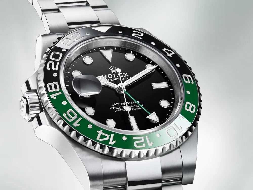 Introduced in 2013, the GMT-Master II BLNR uses a distinct Black/ Blue (or 'Day & Night') bezel in ceramic. It is powered by caliber 3186.